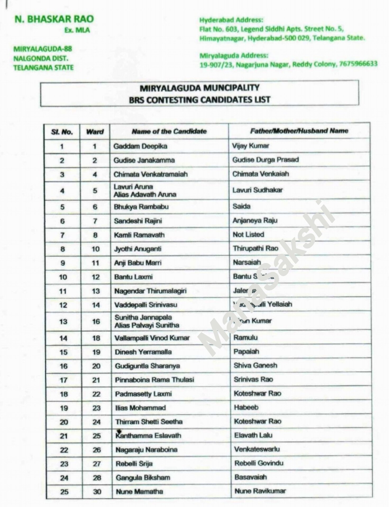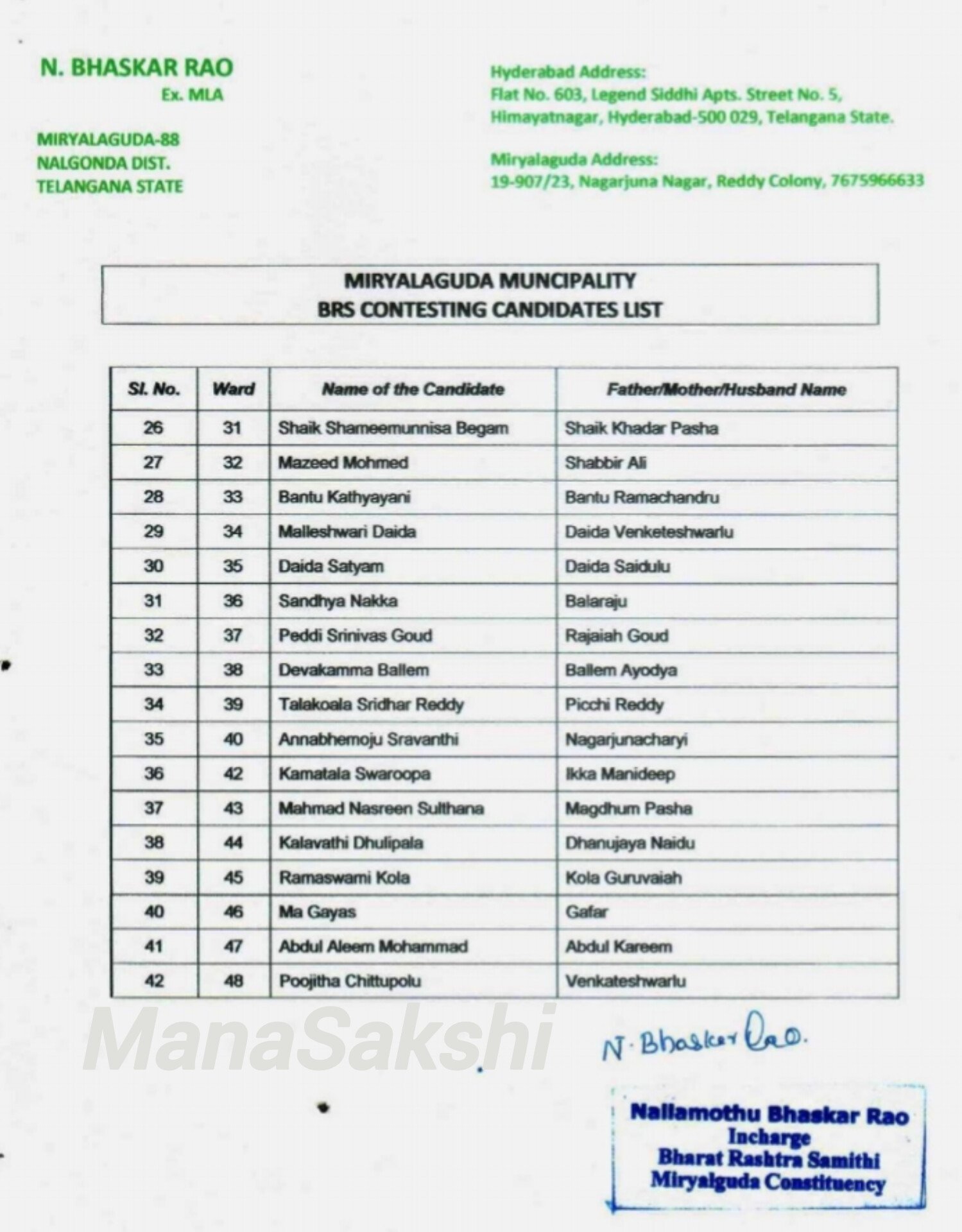 మున్సిపాలిటీ ఎన్నికల సమన్వయకర్త, మాజీ ఎంపీ బడుగుల లింగయ్య యాదవ్ , మిర్యాలగూడ మాజీ ఎమ్మెల్యే నల్లమోతు భాస్కర్ రావు చేతులమీదుగా అభ్యర్థులకు ఫారాలను అందజేశారు.