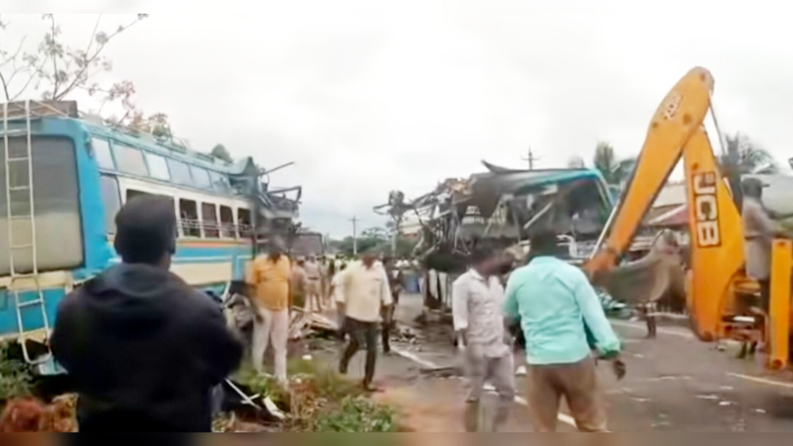 Accident : ఘోర ప్రమాదం.. రెండు ప్రైవేట్ బస్సులు ఢీ, ఆరుగురు మృతి..!