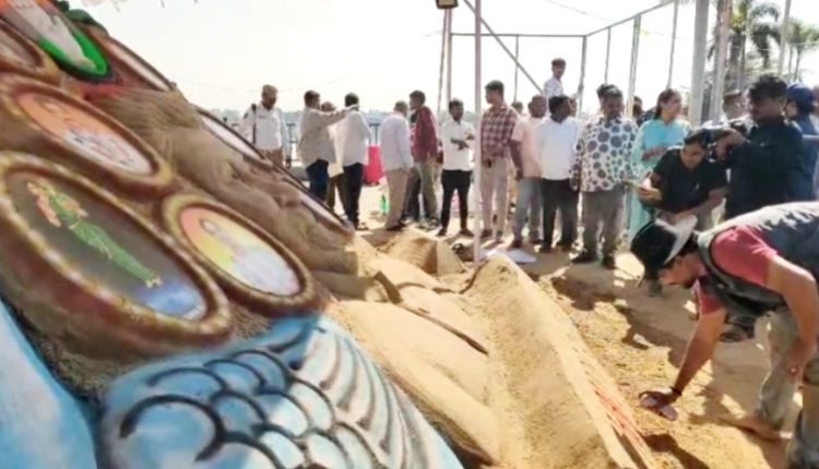 TG News : హుస్సేన్ సాగర్ తీరాన ముఖ్యమంత్రి రేవంత్ రెడ్డి సైకత శిల్పం..!