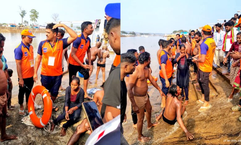 మేడారం సమ్మక్క, సారలమ్మ మహా జాతర సందర్భంగా జంపన్న వాగు వద్ద పుణ్యస్నానాలు ఆచరిస్తుండగా ప్రమాదం సంభవించింది. ముగ్గురు భక్తులు నీటిలో మునిగిపోతుండగా 5వ బెటాలియన్ ఎస్ డి ఆర్ ఎఫ్ బృందం, ములుగు సిబ్బంది సాహసోపేతంగా రక్షించారు. భూపాలపల్లి ప్రాంతానికి చెందిన ఒక వ్యక్తి (36) ఇద్దరు బాలికలు (14, 13) వారిని సురక్షితంగా ఒడ్డుకు చేర్చారు.