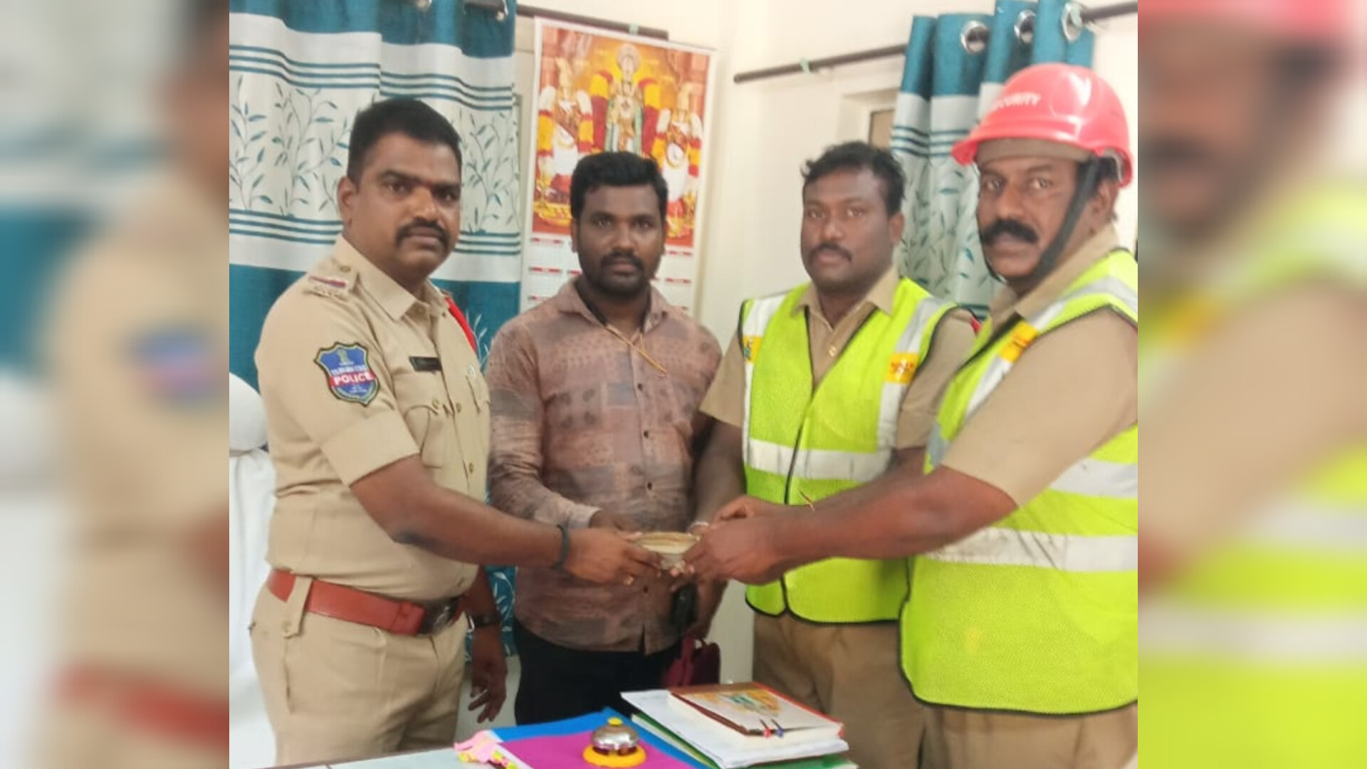 బ్యాగులో ఉన్న పదివేల నగదుతో పాటు విలువైన బ్యాంకు పత్రాలను బాధితుడికి అందజేశారు. దొరికిన బ్యాగును నిజాయితీగా అందజేసినందుకు సూపర్ వైజర్లను ఎస్సై పరమేష్,మై హోం పరిశ్రమ యూనిట్ హెడ్ నందనమూడి శ్రీనివాసరావులు అభినందించారు.