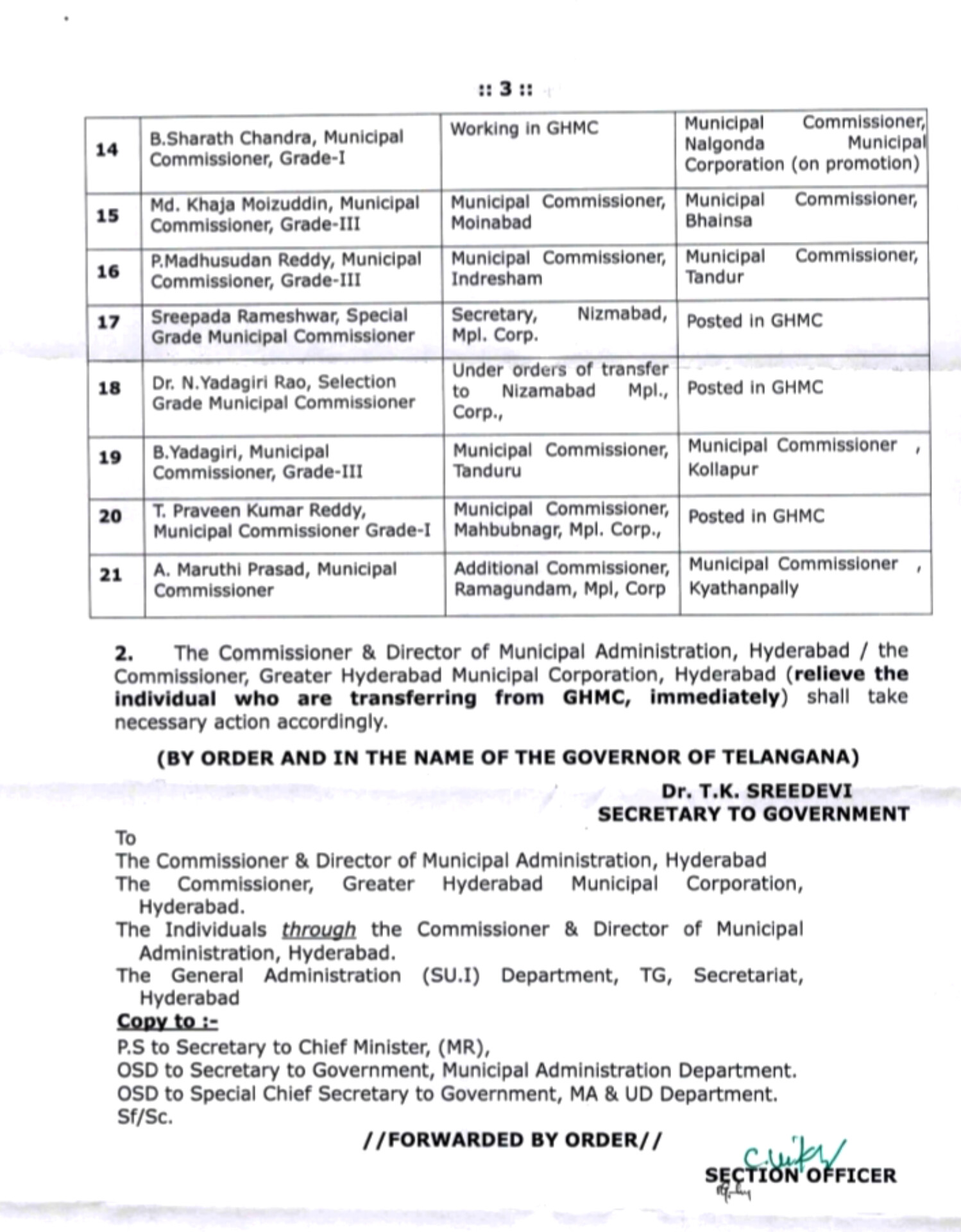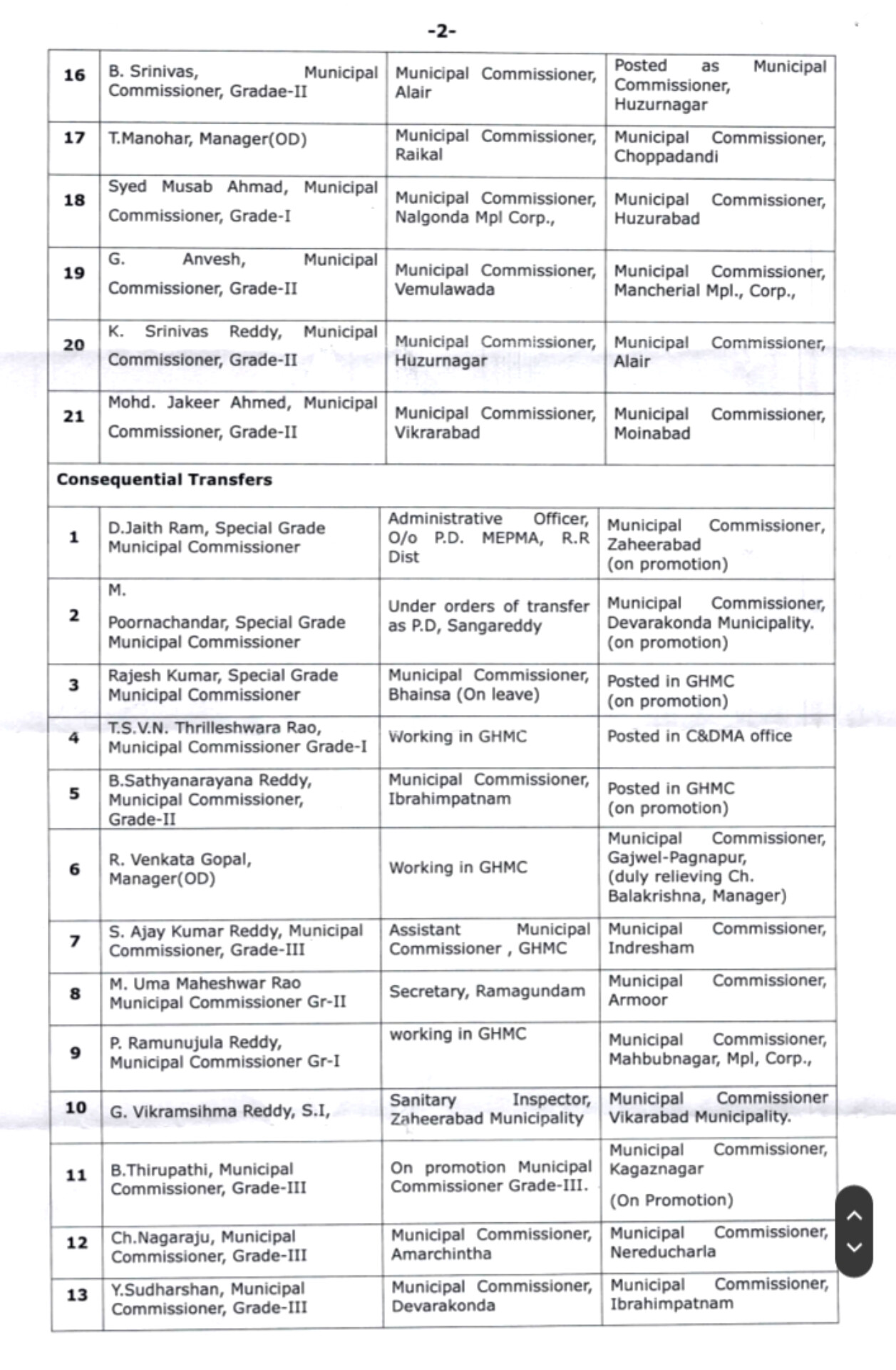 TG News : మున్సిపల్ కమిషనర్లు భారీగా బదిలీలు..!