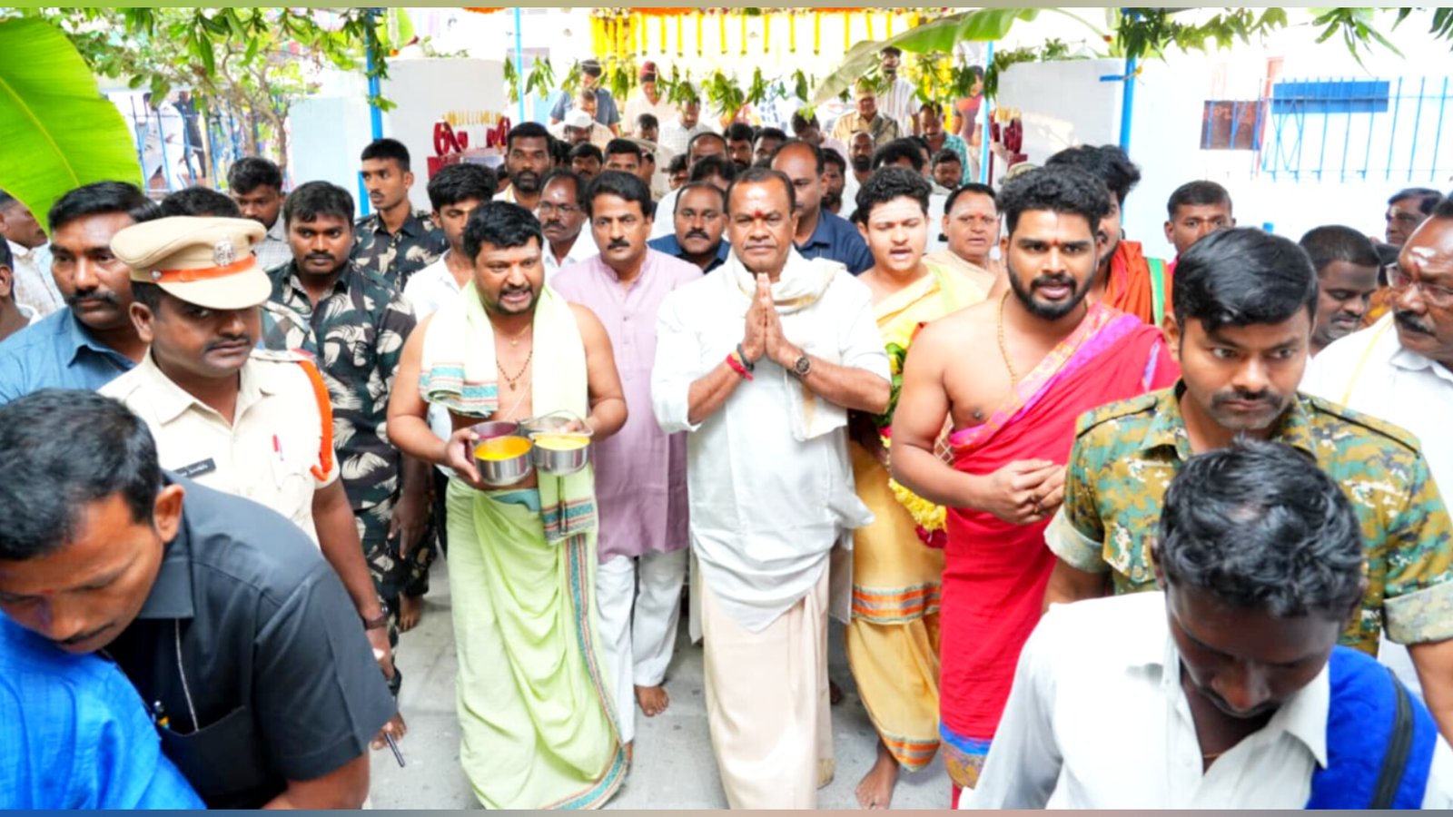 రాష్ట్ర ప్రభుత్వం తరఫున పట్టు వస్త్రాలు అందజేసిన మంత్రి.