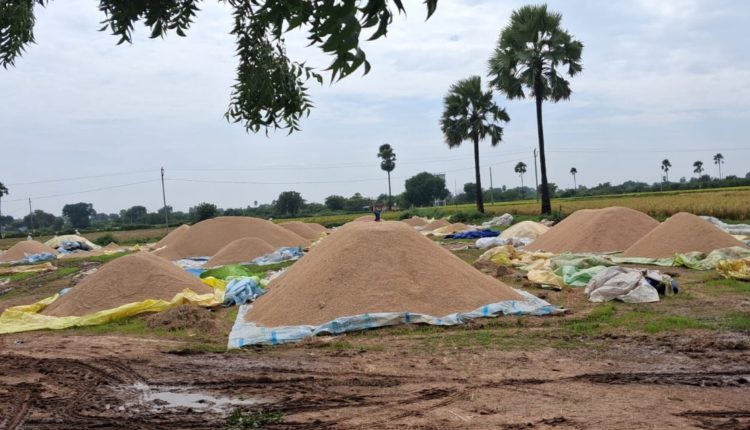 ఆరుగాలం కష్టపడి పండించిన పంట తీరా మార్కెట్కు వచ్చేసరికి అకాల వర్షాల వలన ప్రభుత్వం ప్రకటించిన 17% మాయిచ్చర్ రాక ధాన్యాన్ని ఇటు అటు తిరగబోస్తూ రైతుల అవస్థలు పడుతున్నారు ప్రభుత్వం తడిసిన ధాన్యాన్ని ఎలాంటి ఆంక్షలు లేకుండా ధాన్యాన్ని కొనుగోలు చేయాలని రైతులు ప్రభుత్వాన్ని వ్యవసాయ అధికారులను వేడుకుంటున్నారు.