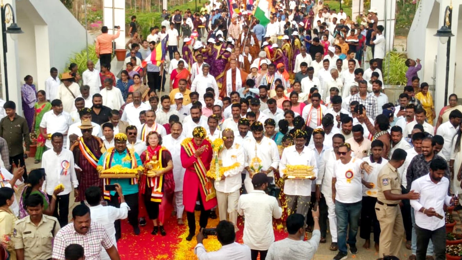 థాయిలాండ్ నుండి బౌద్ధ దమ్మయాత్ర ద్వారా తీసుకురాబడిన బుద్ధ ధాతువులను బుద్ధ వనం ప్రధాన ద్వారం నుండి స్థానిక శాసనసభ్యులు కుందూరు జై వీర్ రెడ్డి, నందికొండ మున్సిపాలిటీ చైర్ పర్సన్ మానస స్వర్ణ, జడ్పీ మాజీ వైస్ చైర్మన్ కర్నాటి లింగారెడ్డి, గగన్ మాలిక్ ఫౌండేషన్ అధ్యక్షులు గగన్ మాలిక్, సిద్ధార్థ లతో కలిసి బుద్ధవనం ప్రత్యేక అధికారి మల్లేపల్లి లక్ష్మయ్య బుద్ధ ధాతువులను ఊరేగింపుగా తీసుకువచ్చి మహ స్తూపం లోని ధ్యాన మందిరంలో సందర్శకుల సందర్శనార్థం అందుబాటులో ఉంచారు.