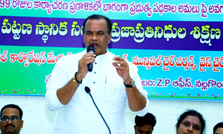 ప్రజాపాలన- ప్రగతి ప్రణాళిక 99 రోజుల కార్యాచరణ ప్రణాళిక అమలులో భాగంగా గురువారం నల్గొండ జిల్లా పరిషత్ సమావేశ మందిరంలో నూతనంగా ఎన్నికైన కార్పొరేటర్లు, మున్సిపల్ కాన్సిలర్లకు ఉద్దేశించి ఏర్పాటుచేసిన శిక్షణ కార్యక్రమాన్ని మంత్రి కోమటిరెడ్డి వెంకటరెడ్డి ప్రారంభించారు.