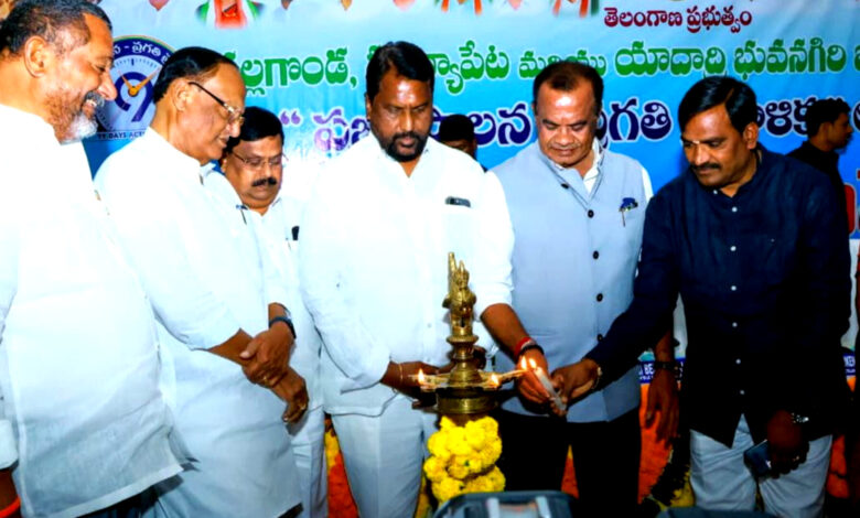 లబ్ధిదారులకు పథకాలు అందించాల్సిన అవసరం ఉందని అన్నారు. రాష్ట్ర రోడ్లు, భవనాలు, సినిమాటోగ్రఫీ శాఖల మంత్రి కోమటిరెడ్డి వెంకట రెడ్డి మాట్లాడుతూ రాష్ట్ర ప్రభుత్వం ప్రజా పాలన- ప్రగతి ప్రణాళిక పేరుమీద ముఖ్యమైన 10 అంశాల వారిగా కార్యక్రమాలను నిర్వహిస్తున్నదని ,పరిసరాల పరిశుభ్రత, పెండింగ్ ఫైల్ పరిష్కారంలో భాగంగా జిల్లా వ్యాప్తంగా అన్ని ప్రభుత్వ కార్యాలయంలో పరిసరాలను పరిశుభ్రంగా ఉంచడమే కాకుండా పెండింగ్ ఫైల్లను సైతం పరిష్కరించాలన్నారు.