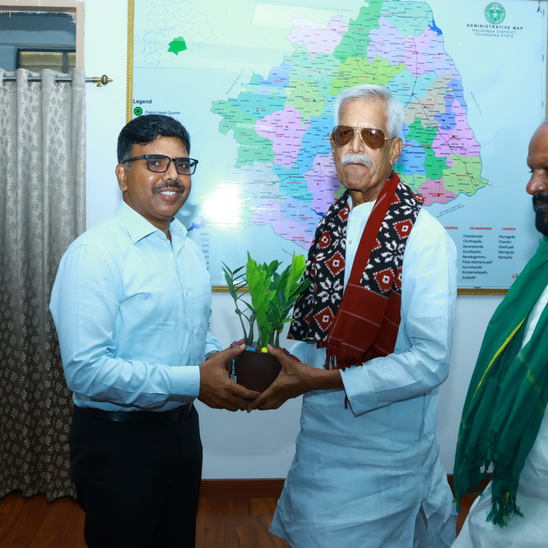అంతకు ముందు చైర్మన్ సమీక్ష నిర్వహించేందుకు జిల్లా కలెక్టర్ కార్యాలయానికి రాగా జిల్లా కలెక్టర్ బి. చంద్రశేఖర్ చైర్మన్ కు పుష్పగుచ్చం అందజేసి స్వాగతం పలికారు.