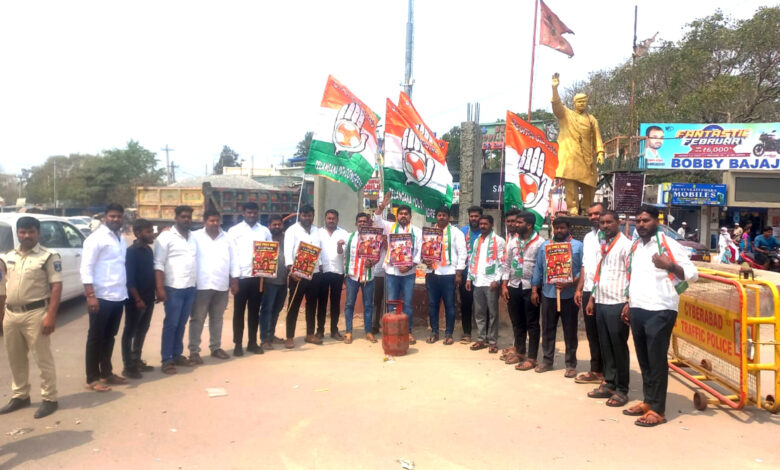 శంకర్‌పల్లి మండల కేంద్రంలో ప్రధాన చౌరస్తాలో ఆదివారం కేంద్ర ప్రభుత్వం పెంచిన గ్యాస్ ధరల పెంపుపై మండల యూత్ కాంగ్రెస్ అధ్యక్షుడు బొల్లారం ప్రశాంత్ రెడ్డి ఆధ్వర్యంలో నిరసన చేశారు.