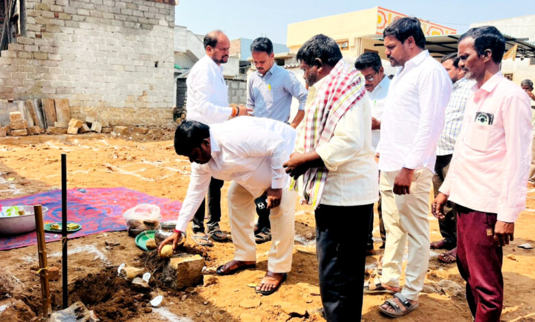 ఇందిరమ్మ ఇంటి నిర్మాణానికి భూమి పూజ చేసిన సర్పంచ్..!