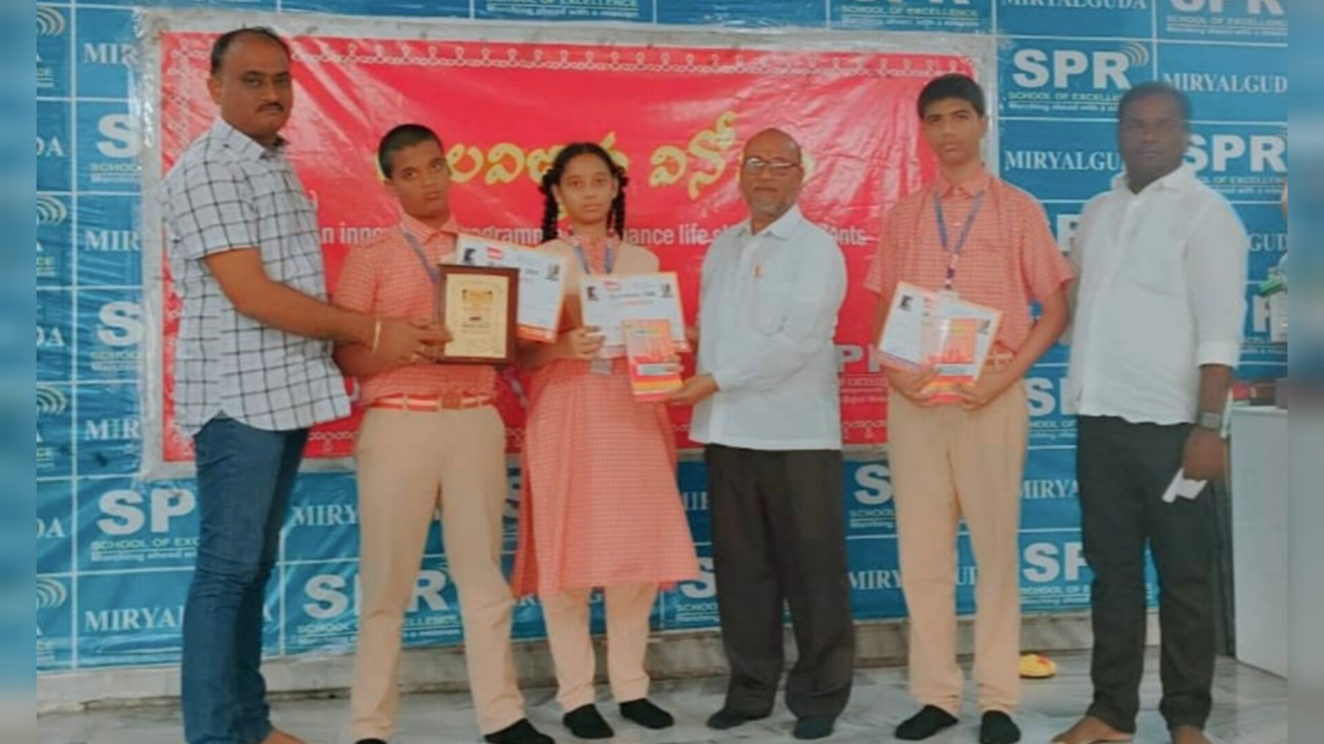 జన విజ్ఞాన వేదిక ఆధ్వర్యంలో నిర్వహించిన చెకుముకి టాలెంట్ టెస్ట్ జిల్లా స్థాయి పోటీలలో ఎస్ పి ఆర్ స్కూల్ విద్యార్థులు ప్రథమ స్థానం పొంది రాష్ట్రస్థాయికి ఎంపికయ్యారు. నల్గొండ జిల్లా మిర్యాలగూడ కు చెందిన ఎస్పిఆర్ హై స్కూల్ విద్యార్థులు చెకుముకి టాలెంట్ టెస్ట్ లో రాష్ట్రస్థాయికి ఎంపికైనట్లు స్కూల్ ప్రిన్సిపాల్ జనార్దన్ రెడ్డి తెలిపారు.