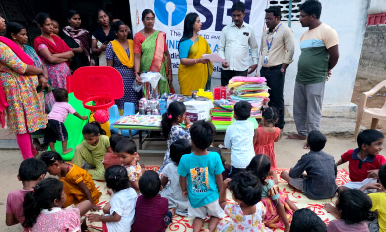 నల్లగొండ జిల్లా వేములపల్లి మండలంలోని రావులపెంట గ్రామంలో అంగన్వాడి-3వ కేంద్రానికి ఎస్బీఐ పాన్ ఇండియా సీఏస్ఆర్ కార్యక్రమంలో భాగంగా తెలంగాణ రాష్ట్ర ఎస్బీఐ ఆధ్వర్యంలో పిల్లలకు అవసరమైన అనేక ఉపకరణాలను అందజేశారు.