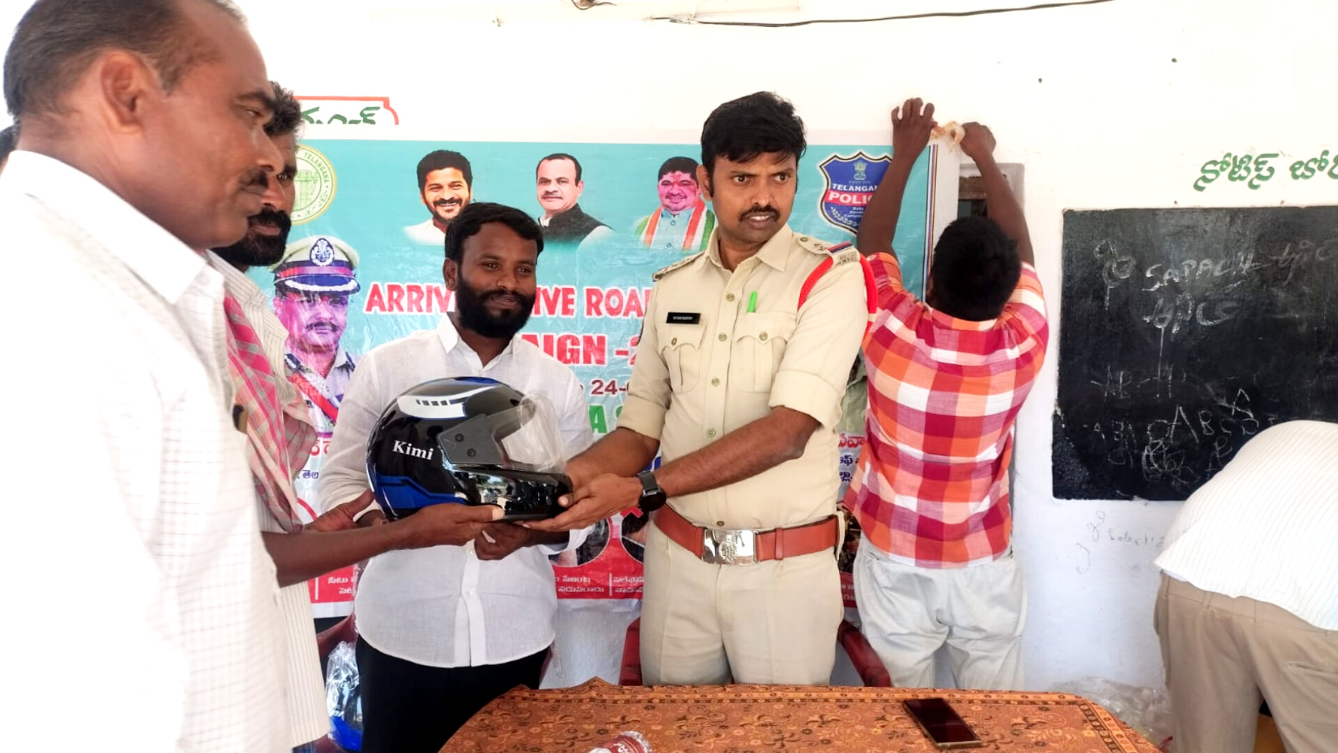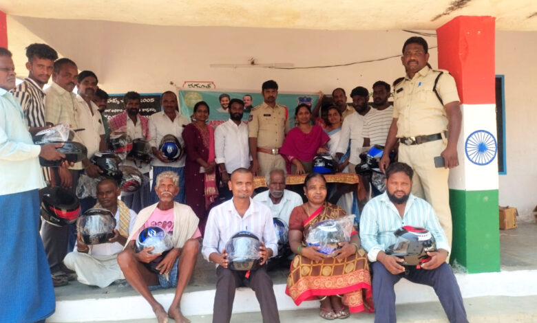 అదేవిధంగా గ్రామాల్లో ఎవరైనా పరిచయం లేని కొత్త వ్యక్తులు సంచరించినట్లయితే తమ సమాచారం అందించాలన్నారు. గ్రామ సర్పంచ్ వాహనదారులకు హెల్మెట్ అందించడం పట్ల వారికి అభినందనలు తెలియజేశారు. ఈ కార్యక్రమంలో గ్రామ వార్డు సభ్యులు, పోలీస్ సిబ్బంది, గ్రామ పెద్దలు ద్విచక్ర వాహనదారులు యువకులు తదితరులు ఈ కార్యక్రమంలో పాల్గొన్నారు.